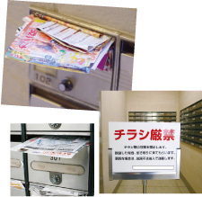生活者様にチラシを気持ちよく受け取っていただくことは、ポスティングの大前提です。チラシのたまっているポスト、チラシ不要と書かれたポスト。私たちはこういったポストへの配付は、絶対に行いません。ポストの入り口にチラシを残さない完全投函を基本に、良識あるポスティングを心がけています。